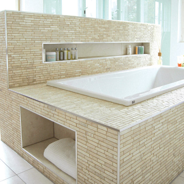 Die elden Marmorsticks ibis white von stein & ambiente sind 100% Natur pur! Die handgefertigten Marmorsticks sind auf Netze aufgeklebt und eignen sich besonders gut für individuelle Wandgestaltungen. Aus den Netzen, im Format 30x30 cm, können auch passende Bordüren in beliebiger Höhe geschnitten werden. Durch das sogenannte interlocking system verschwinden die einzelnen Netzübergänge und eine einheitliche Steinstruktur entsteht. Der schöne Marmor-Cremeton ist zeitlos und passt sich vielen Interieurs an. Besonders schön wirken die stein & ambiente Mamorsticks in Kombination mit Ton-in-Ton-Fliesen aus. Der helle Marmor eignet sich besonders für kleine Räume, macht diese optisch größer; die Steinkstruktur gibt Räumen Tiefe und Struktur. Komplettieren kann man den Natur-Look mit Accessoires aus Holz. Wir finden gerade im Badbereich sind die Marmorsticks ein tolles Highlight! Die Marmorsticks von stein & ambiente sind unter anderem bekannt aus Schöner Wohnen.