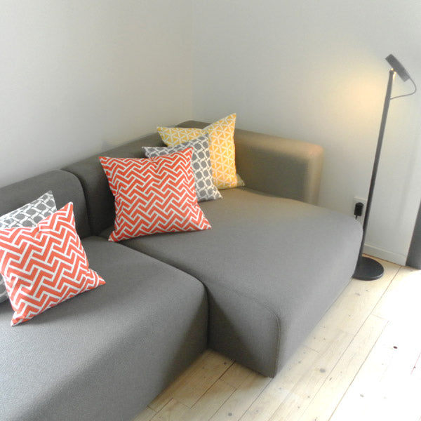 Kissenhülle, 40x60 cm groß, aus reiner Biobaumwolle für exklusives Dekokissen. Der robuste, feste Stoff trägt den Namen Canvas. Und der Name ist Programm. Das Kissen ist ein wahres Kunstwerk. Die Vorderseite ziert ein rot-cremeweißes grafisches Muster, die Rückseite ist einfarbig cremeweiß. Der Stoff hat leichte Ungleichmäßigkeiten, was ihn noch sympathischer macht. So passt er gut in Wohnungen im Loftstil. Die Kissenbezüge sind in drei Farben mit verschiedenen Mustern erhältlich: in Grau, Gelb und Rot. Das Design der Kissenhüllen ist jeweils elegant und modern. Richtig toll wirken die Kissen gemeinsam. Kombinieren Sie verschiedene Modelle und Größen und holen Sie sich Farbe ins Haus. Die Canvas Serie von Pete & Sally ist die erste Kissenkollektion von tujuh: Kissen für Menschen, die etwas Besonderes suchen. Passende Innenkissen erhalten Sie hier im Shop.