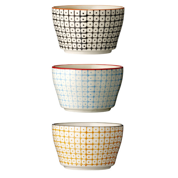 Die farbenfrohen Carla Schälchen bringen Freude in die Küche! Die Obstschalen des dänischen Design-Labels Bloomingville sind mit Liebe designt, aus Porzellan und von Hand bemalt. Ob als Salatschale oder Dessertschale, für Tapas, Fingerfood oder Dips, der farbenfrohe Retro-Style macht richtig Appetit! Die Schalen machen nicht nur in der Küche als Servierschalen eine gute Figur – Sie lassen sich auch hervorragend als Badaccessoire und Aufbewahrung für Kleinigkeiten im ganzen Haus verwenden. Die hübschen Muster der Behälter de Carla-Geschirrs von Bloomingville lassen sich prima mit den anderen Produkten der Carla Serie kombinieren. Bei uns im Shop finden sie zwei Varianten der Farbsets. Erheitern Sie ihr Zuhause mit dem hübschen Carla-Design von Bloomingville!