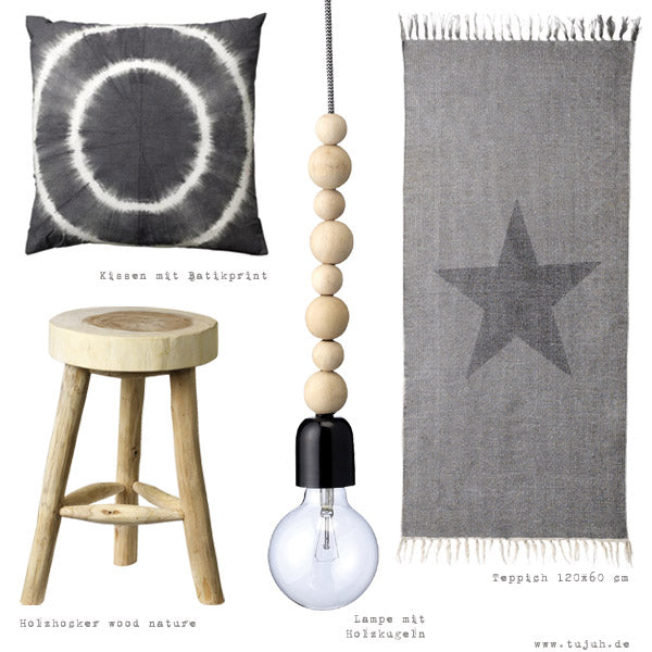 Der legere Vintage Look dieses Teppichs lässt uns nicht mehr los! Das Design des Dänischen Labels Bloomingville steht für einen anspruchsvollen, individuellen Life Style. Diese schicke Coolness kommt in dem grauen Läufer voll zum Ausdruck! Der hochwertige Baumwollteppich hat eine strukturierte Gewebung und kommt in einem schönen Grau. Die Fransen und der große, schwarze Stern verleihen diesem ausgesuchten textilen Schmuckstück fürs Zuhause die coole Lässigkeit. Dank der hundertprozentigen Baumwolle und der neutralen Farben wirkt der Teppich natürlich und ist bestens für alle Räume geeignet. Ein tolles Stil-Ensemble ergibt sich in Kombination mit dem Drum stool pink star von A.U Maison, dem Bloomingville Holzschild „Happiness is not a Destination“ in schwarz oder dem Bloomingville Baumwollkissen 30x60 cm in weiß grauer Batikoptik. Alleine legt der Lone Star Läufer allerdings auch einen super-stylischen Auftritt hin!