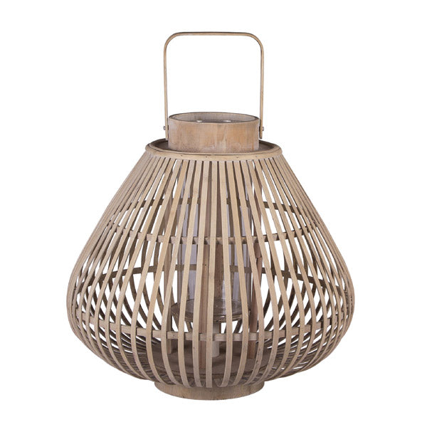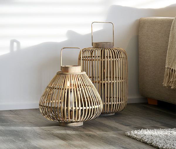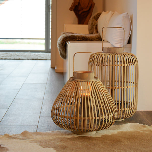 Die Bambuslaterne Sahara von Broste Copenhagen ist ein Windlicht aus Holz, 33 cm hoch und 39 cm im Durchmesser. Die schöne Laterne ist aus Bambusholz gefertigt und hat einen Glaseinsatz für Kerzen im Durchmesser von 6 cm, so sind die Kerzen vor Wind geschützt und so können Sie die Laterne auch außen verwenden, im Garten, auf der Terasse... Sie können den Glaseinsatz übrigens auch mit feinem Sand befüllen, dann sitzen die Kerzen weiter oben, außerdem hat das Windlicht dann mehr Gewicht und fällt bei windigem Wetter nicht so leicht um. Sie können die Bambuslaterne Sahara alleine für sich dekorieren, oder mit weiteren Laternen aus dem Hause Broste Copenhagen.