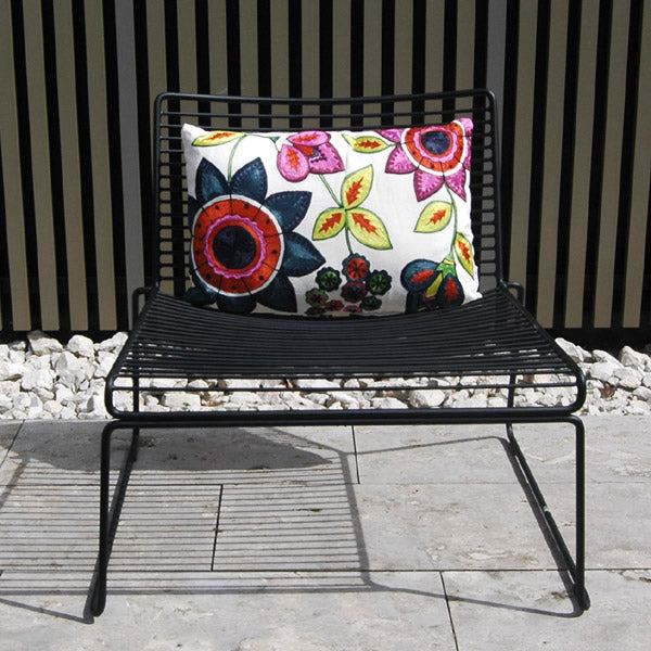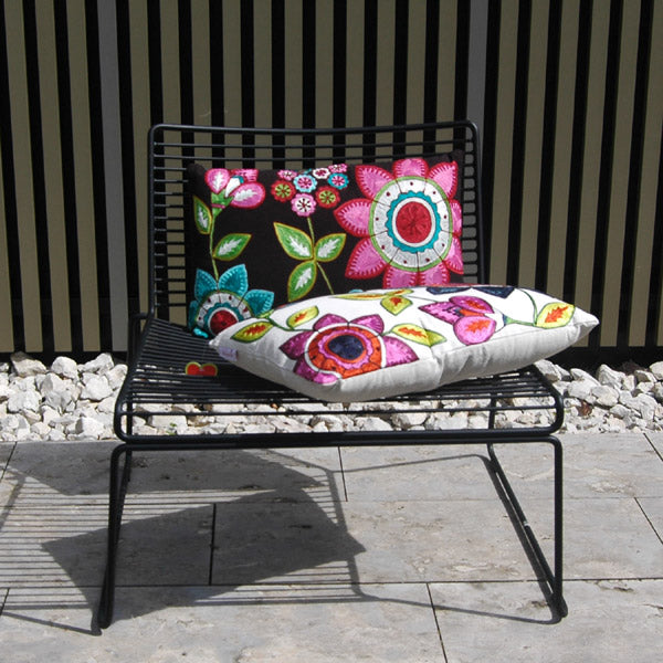 Das Flower Kissen von Imbarro bringt uns den tropischen Garten ins Haus! Auf dem schlichten natur-weißen Hintergrund kommen die bunten, farbenfrohen Blüten-Stickereien besonders schön zur Geltung und versprühen einen Hauch vom Paradies. Die Kissen des niederländischen Labels Imbarro in knalligen Farben begeistern mit ihrem wunderschönen floralen Design. Das Dekokissen kommt mit einem gefüllten Innenkissen in dem schönen Format 40x60 cm. Die Besonderheit der Imbarro Kissen: Die enge Beziehung zwischen den Angestellten in Indien und Imbarro ermöglicht im Jahr mehrmalige Besuche der Fabriken und eine kontinuierliche Aufrechterhaltung menschenwürdiger Arbeitsbedingungen. Die Produkte tragen so zum Wohlbefinden und Wohlstand der Arbeitskräfte in Indien bei. Ob alleine oder in Kombination mit anderen Imbarro Kissen– holen Sie sich die sommerlichen Hingucker in Ihr Heim!