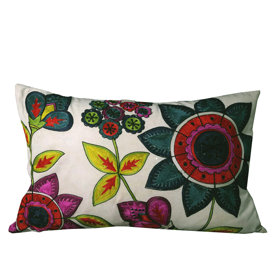 Kissen Flower von Imbarro – Sofakissen in Naturweiß mit aufwendigen Stickereien in den Maßen 40x60 cm