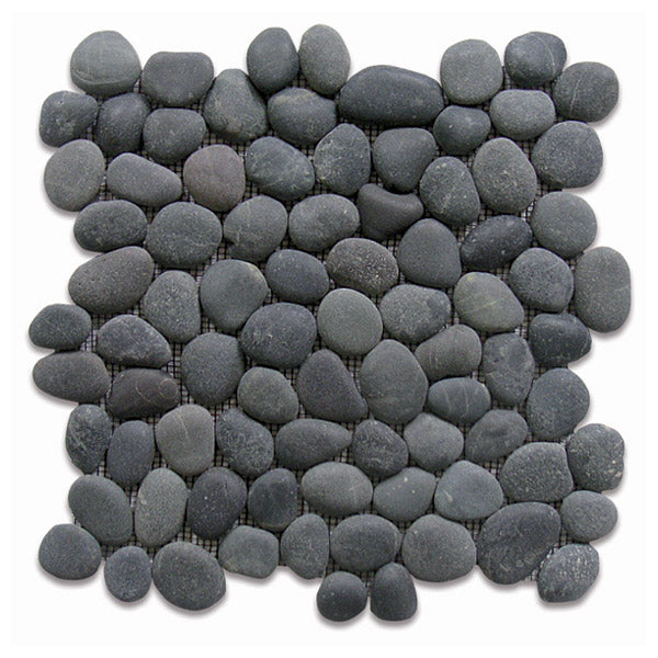 Schwarz-grauer Kieselsteinboden von stein & ambiente - 11 Kieselsteinfliesen in Dunkelgrau im Format 30x30 cm